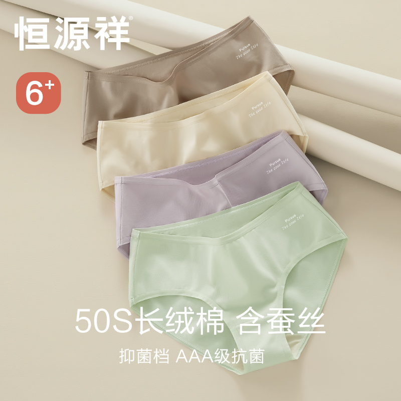 【产品名称:恒源祥内裤女士含桑蚕丝抗菌裆少女生短裤低中高腰纯棉无痕三角裤】