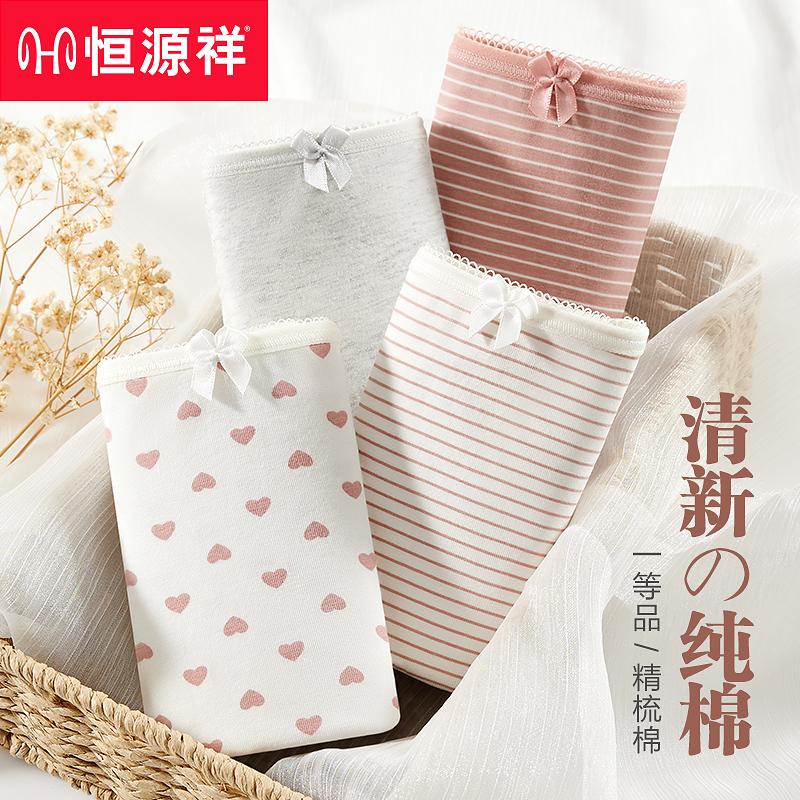 【产品名称:恒源祥女士内裤女纯棉抗菌中腰少女印花学生日系三角短裤全棉新款】