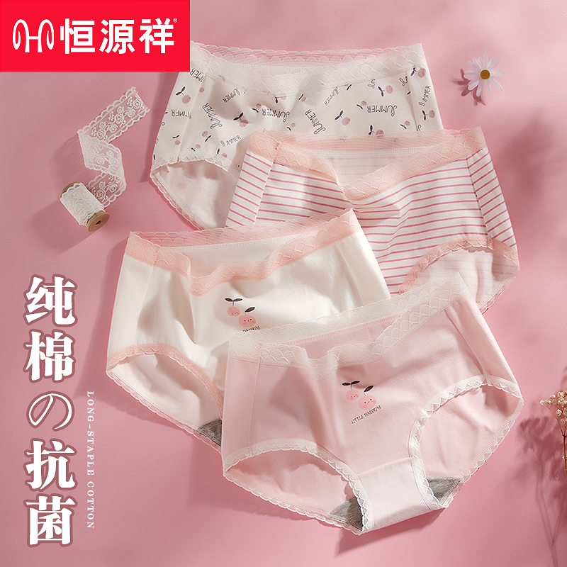 【产品名称:恒源祥女士内裤中腰新款时尚少女印花纯棉抗菌全棉透气女生短裤头】