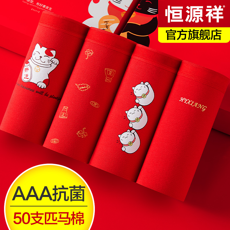 【产品名称:恒源祥本命年大红色内裤女士属虎年纯棉三角裤全棉抗菌中腰短裤头】