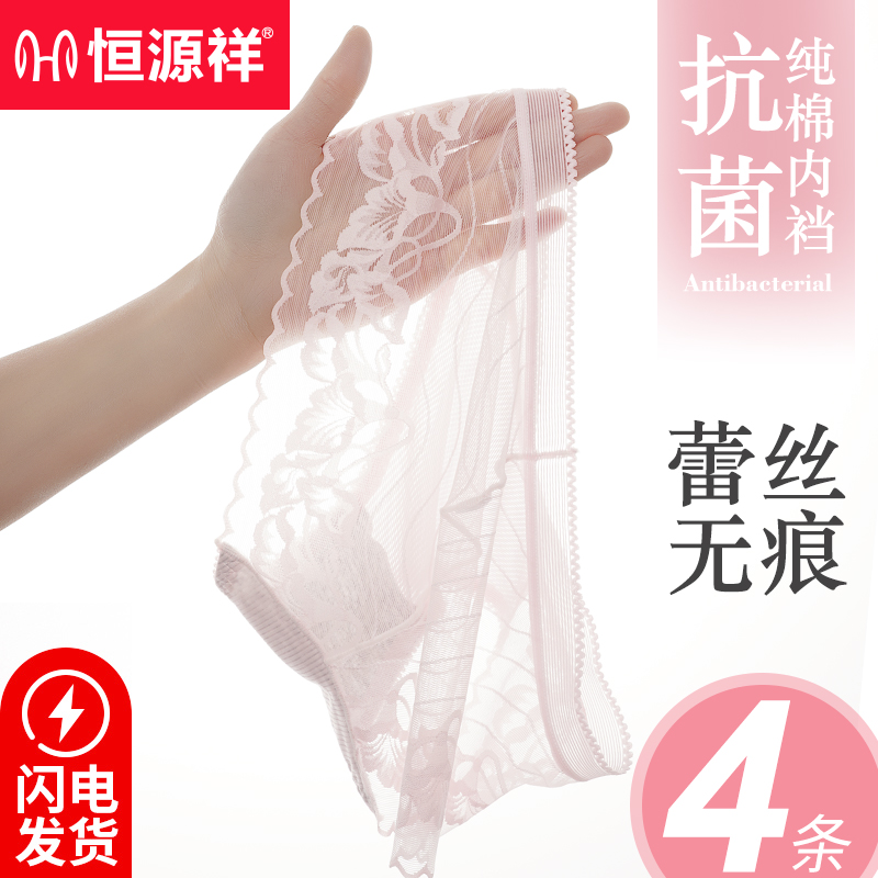 【产品名称:恒源祥冰丝无痕内裤女蕾丝透气纯棉裆抗菌女士三角短裤头性感日系】