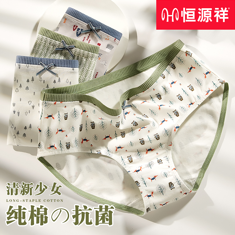【产品名称:恒源祥内裤女士纯棉抗菌中腰清新少女学生全棉无痕透气三角短裤头】