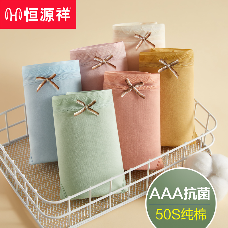 【产品名称:恒源祥女士内裤女纯棉抗菌中腰无痕全棉薄款甜美少女生三角短裤头】