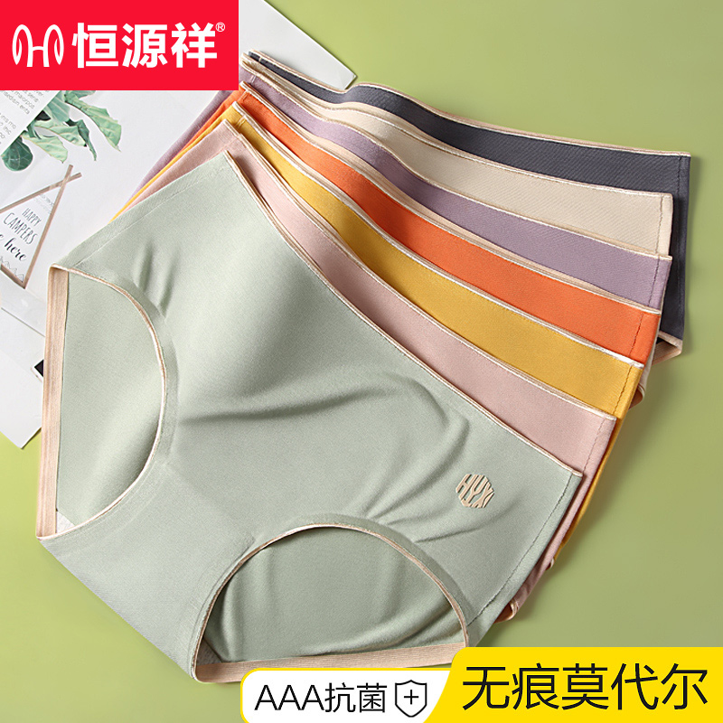 【产品名称:恒源祥女士内裤冰丝无痕莫代尔纯棉裆中腰女生夏季薄款三角短裤头】