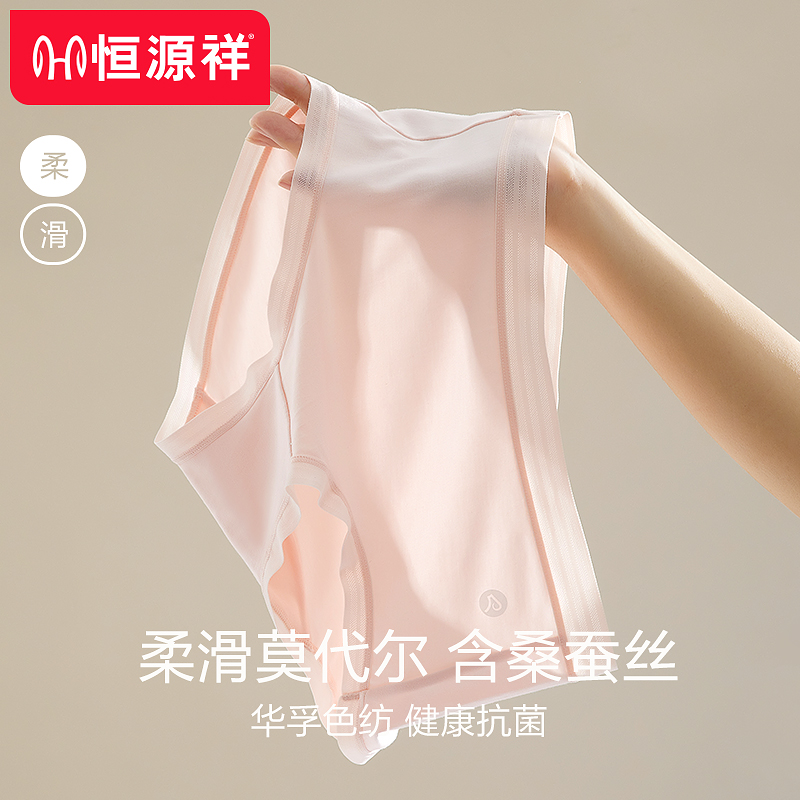 【产品名称:恒源祥莫代尔内裤女士无痕含桑蚕丝抗菌裆夏季薄款透气中腰三角裤】