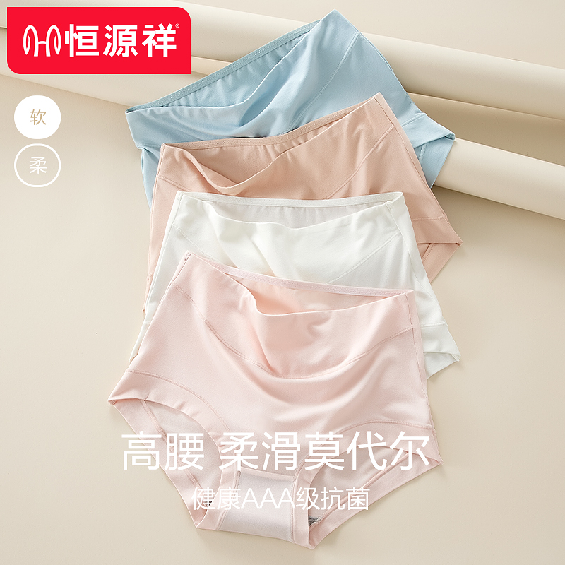 【产品名称:恒源祥莫代尔内裤女士无痕中高腰平角裤夏季薄款纯棉抗菌裆短裤头】