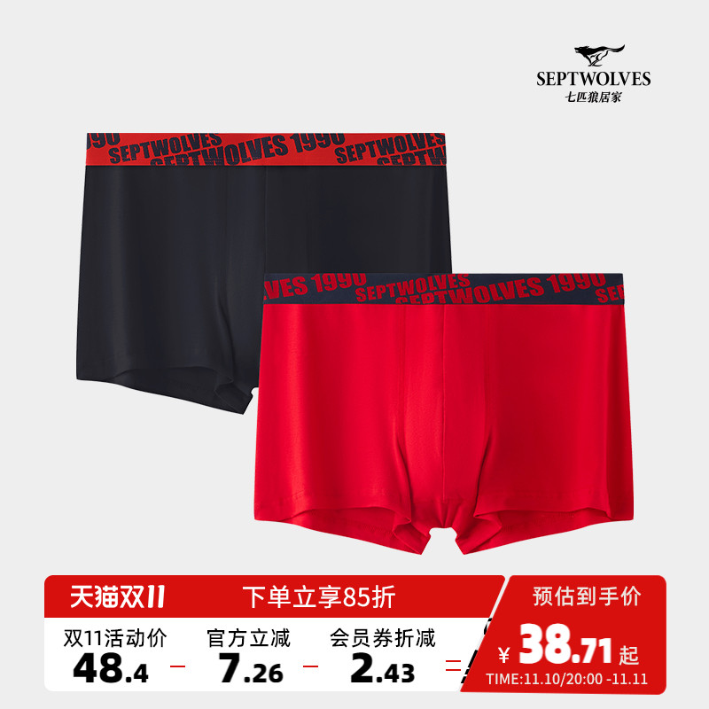 【产品名称:七匹狼纯棉内裤男士平角裤结婚裤衩四角裤红色裤头男生本命年内衣】