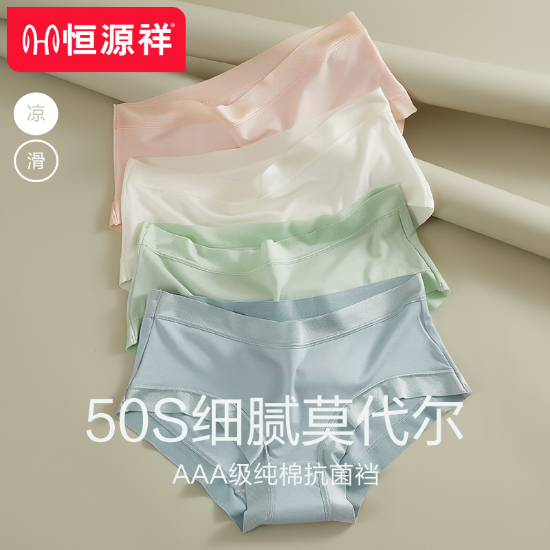 【产品名称:恒源祥女士内裤女冰丝凉感莫代尔夏薄款纯棉裆抗菌无痕三角短裤头】