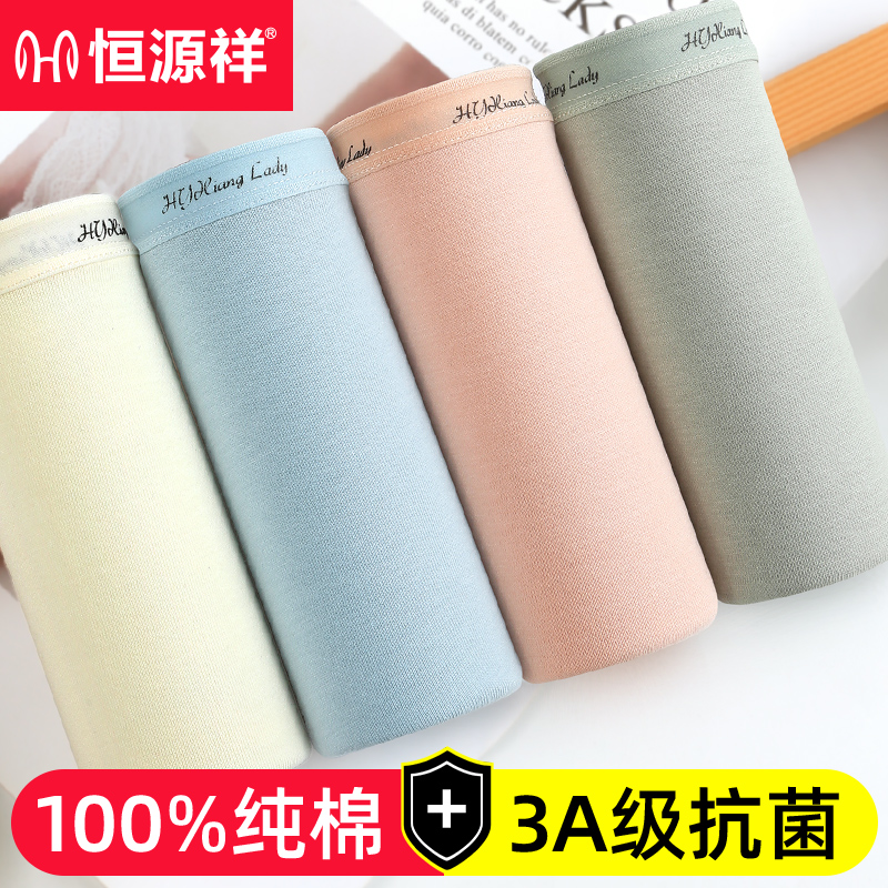 【产品名称:恒源祥纯棉女士内裤平角裤全棉透气无痕抗菌少女生三角短裤头中腰】
