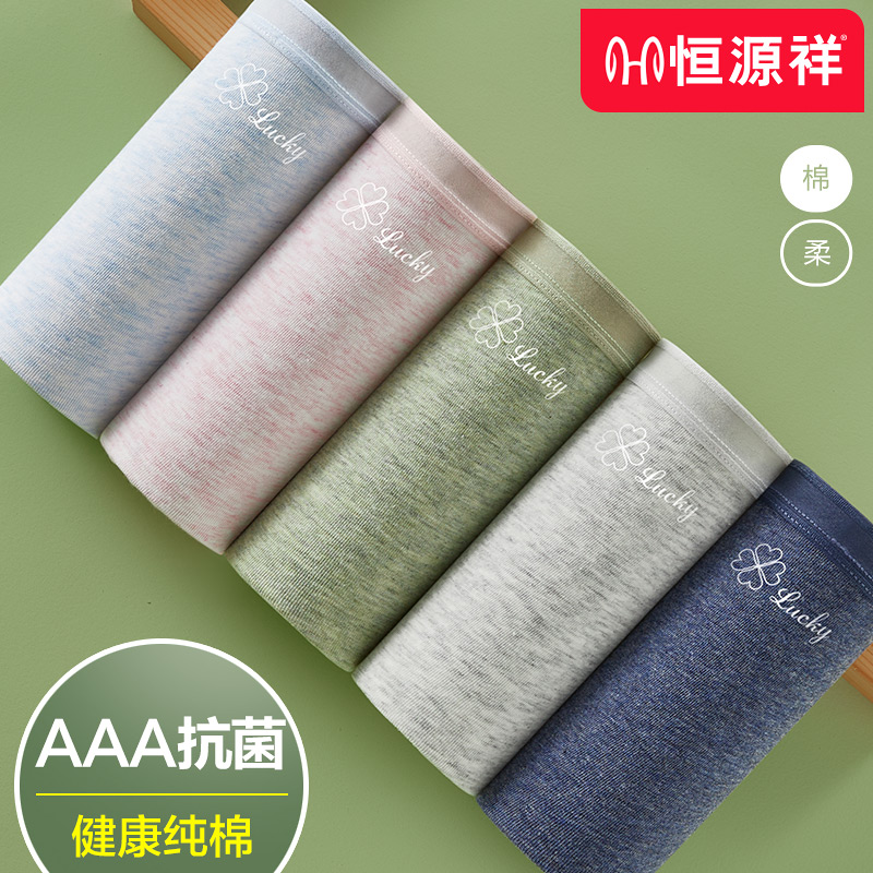 【产品名称:恒源祥女士内裤纯棉抗菌全棉夏季薄款透气中腰无痕三角少女生短裤】