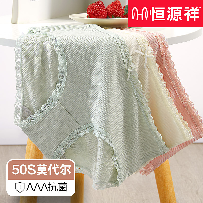 【产品名称:恒源祥内裤女士莫代尔冰丝透气夏季中腰全纯棉裆抗菌蕾丝三角短裤】