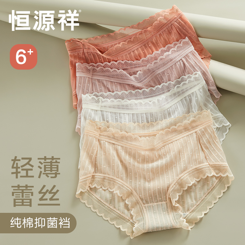 【产品名称:恒源祥女士内裤冰丝夏季薄款纯棉全棉裆蕾丝性感少女生三角短裤头】