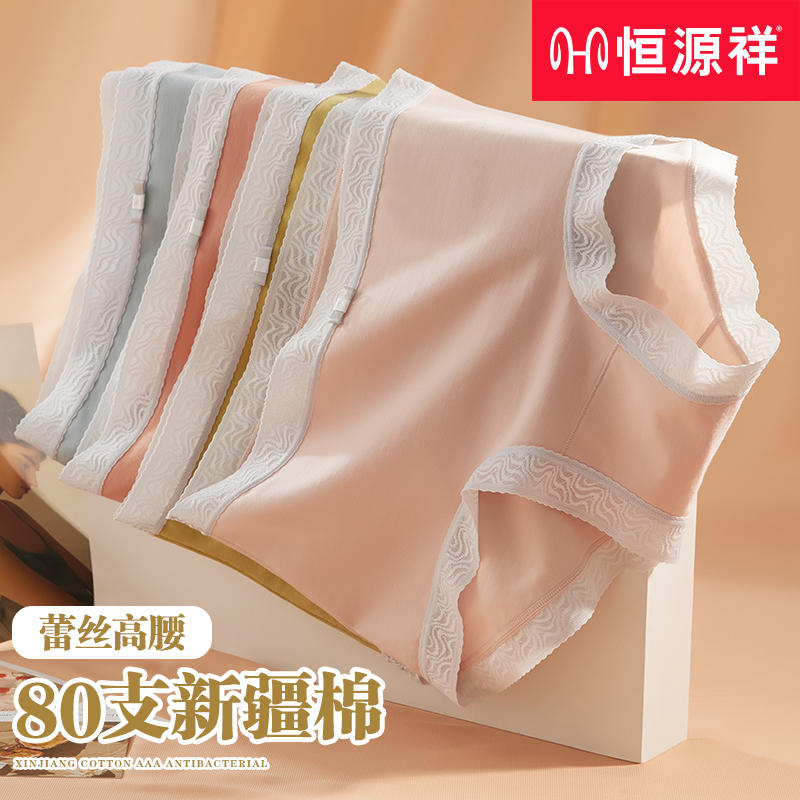 【产品名称:恒源祥内裤女士纯棉蕾丝高腰收腹全棉抗菌提臀中腰透气三角短裤头】