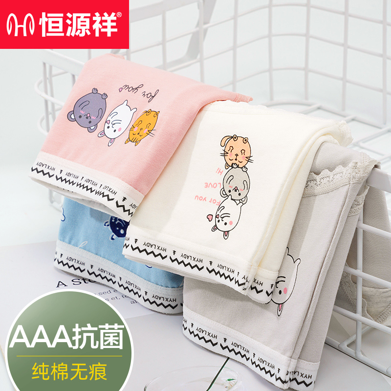 【产品名称:(预售)纯棉女士内裤平角裤全棉透气无痕抗菌少女生三角短裤头中腰】