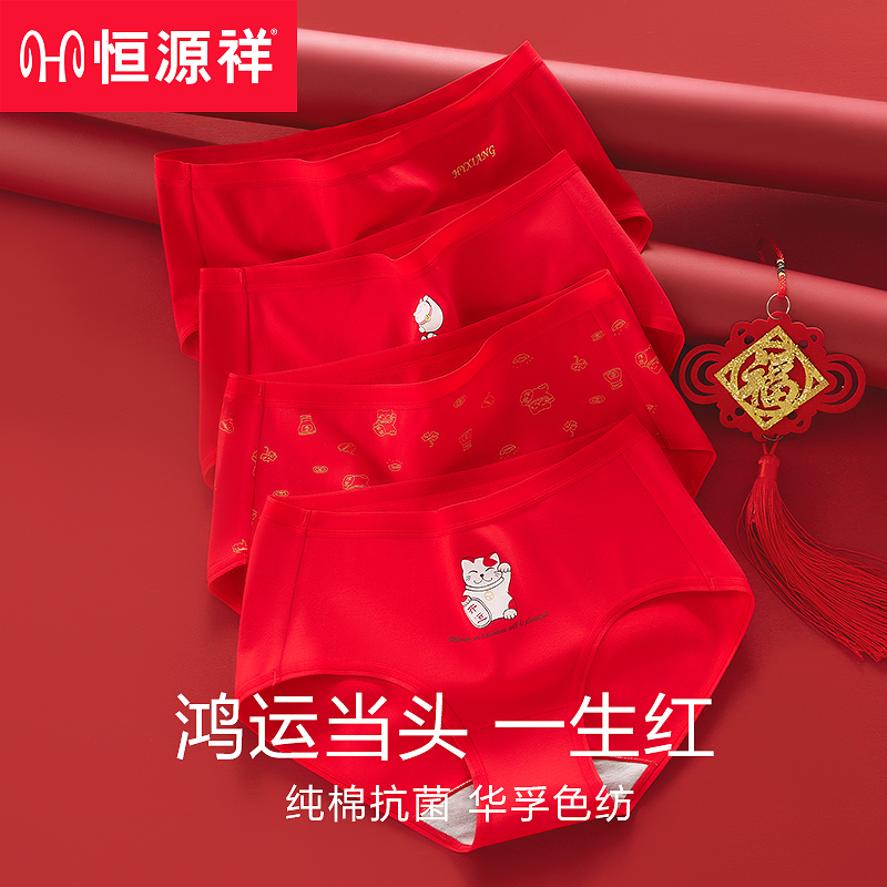 【产品名称:恒源祥本命年红色内裤女士属兔年纯棉抗菌结婚礼物女生三角短裤头】