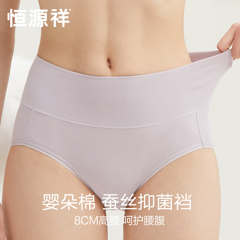 【产品名称:恒源祥纯棉内裤女士桑蚕丝抗菌裆夏季薄款高腰收腹提臀三角短裤头】