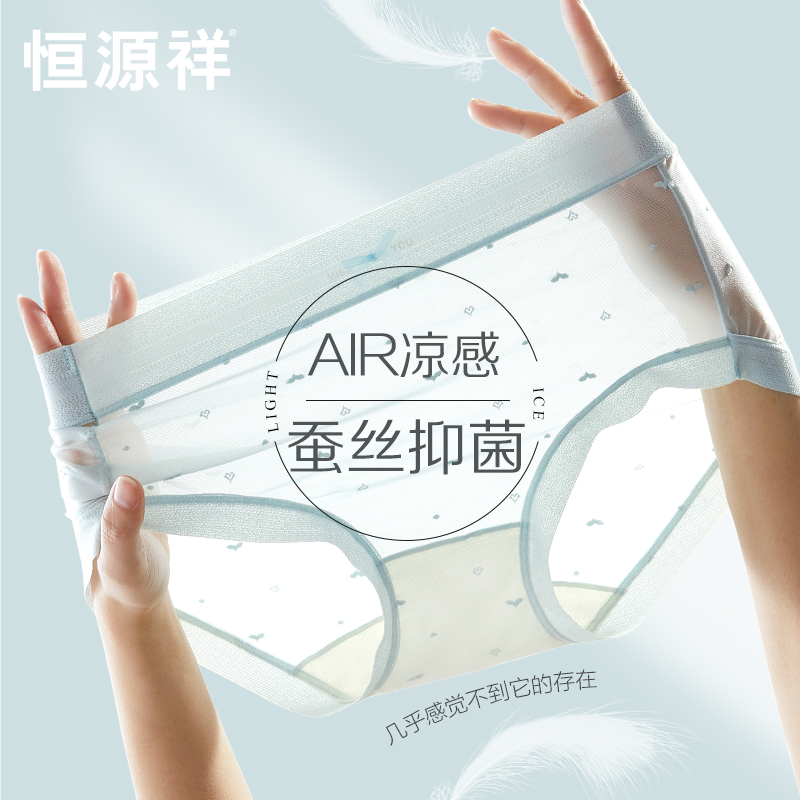 【产品名称:恒源祥凉感冰丝女士内裤女无痕蚕丝裆抗菌薄款女生透气三角短裤头】