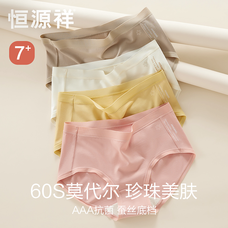 【产品名称:恒源祥珍珠美肤女士内裤女莫代尔无痕桑蚕丝抗菌裆少女生三角短裤】