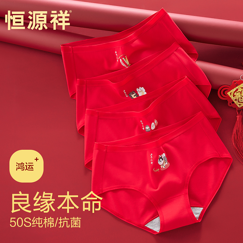 【产品名称:恒源祥内裤女士本命年大红色纯棉抗菌结婚兔年三角裤女生无痕礼盒】