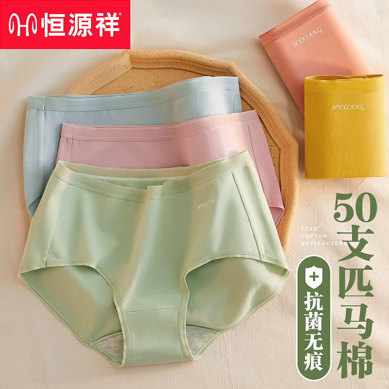 【产品名称:恒源祥女士内裤女纯棉抗菌中腰性感透气三角裤全棉无痕少女生短裤】