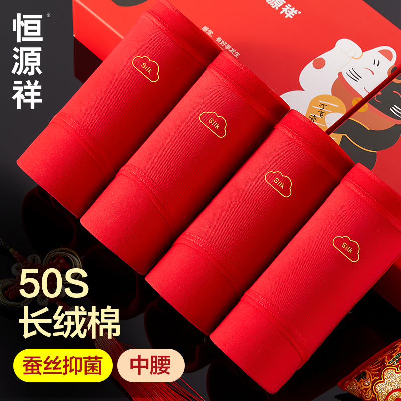【产品名称:恒源祥红色本命年内裤女士纯棉抗菌蚕丝裆结婚礼物属龙三角短裤头】