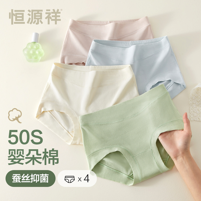 【产品名称:恒源祥纯棉高腰无痕内裤女士莫代尔蚕丝底裆透气收腹提臀三角短裤】