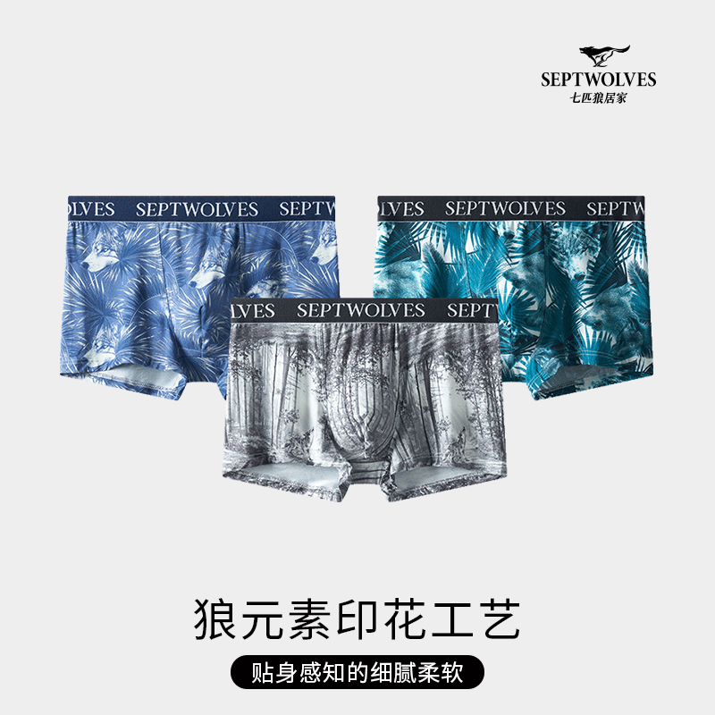 【产品名称:七匹狼内裤男士冰丝平角裤明筋印花薄款运动四角短裤透气裤衩春秋】