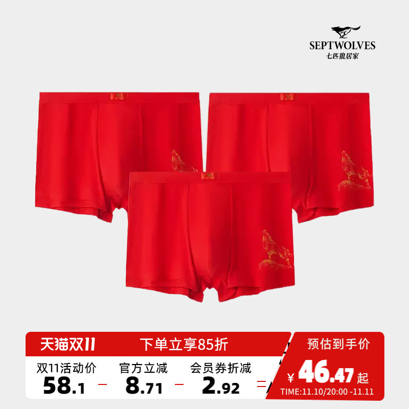 【产品名称:七匹狼纯棉内裤男士本命年平角裤结婚鸿运裤衩透气四角短裤男裤头】