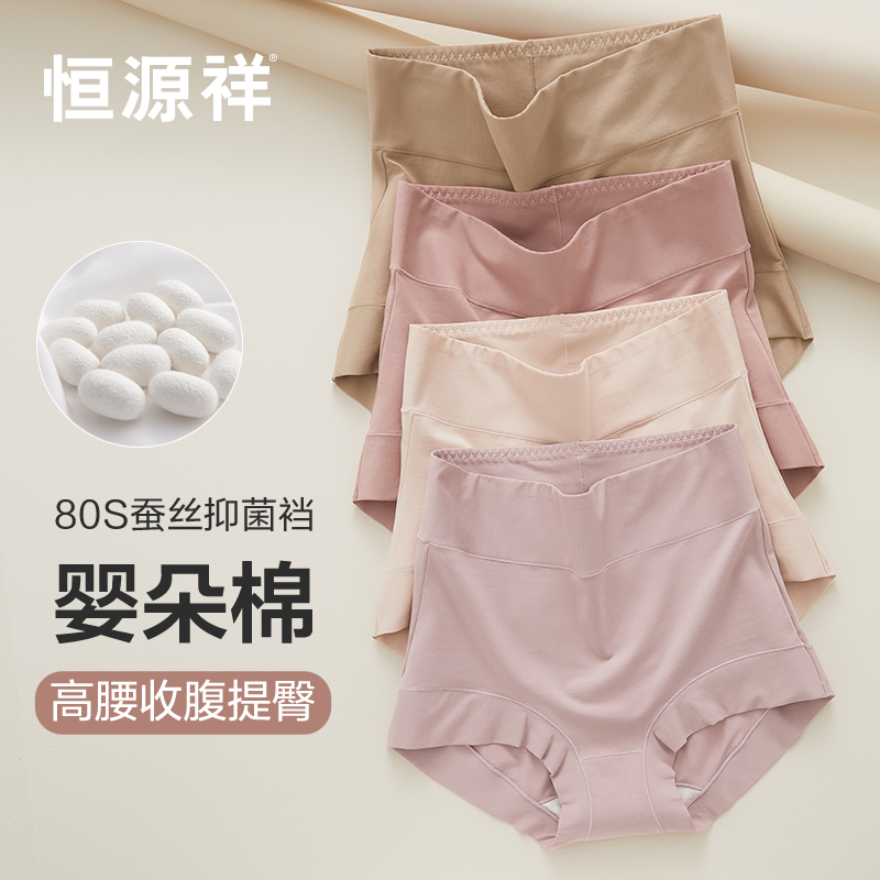 【产品名称:恒源祥女士内裤高腰收腹提臀短裤桑蚕丝抗菌底档纯棉透气三角裤头】