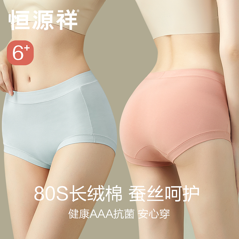 【产品名称:恒源祥女士内裤女纯棉抗菌高腰收腹含桑蚕丝裆无痕女生三角短裤头】