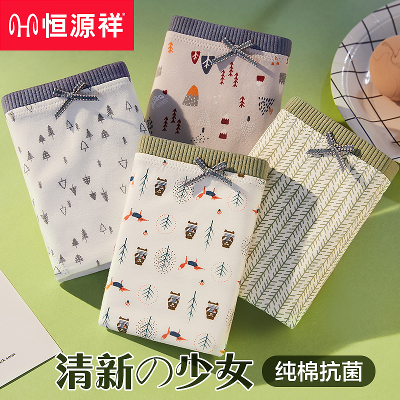 【产品名称:恒源祥女士内裤无痕纯棉抗菌裆少女生夏季透气中腰全棉三角短裤头】
