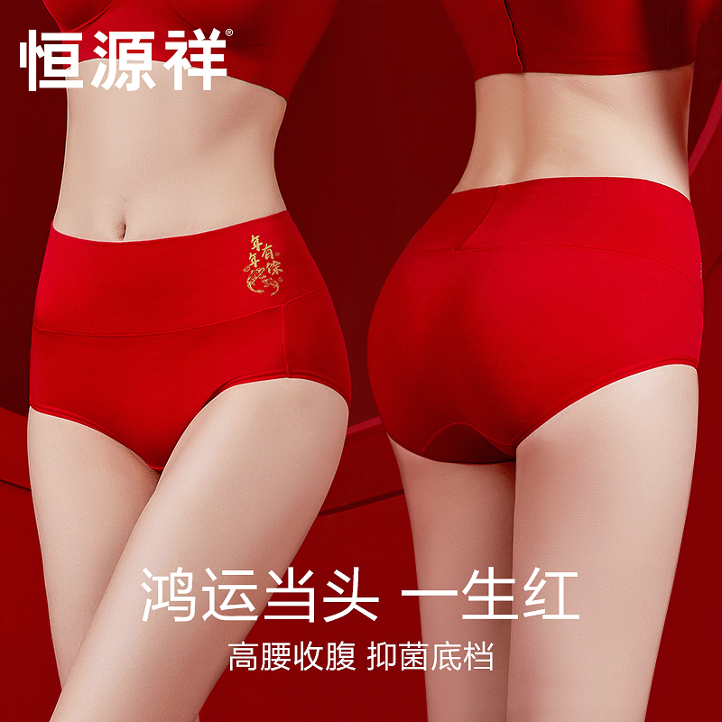 【产品名称:恒源祥本命年红色内裤女士纯棉高腰收腹抗菌结婚属兔年三角短裤头】