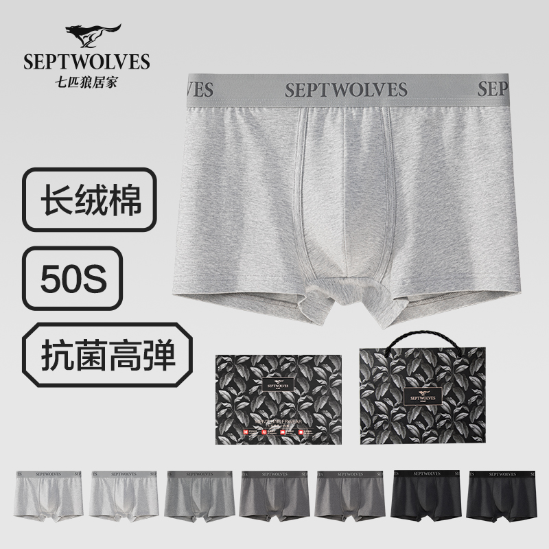 【产品名称:七匹狼男士内裤男生纯棉平角裤全棉透气裤衩男式大码四角裤短裤头】