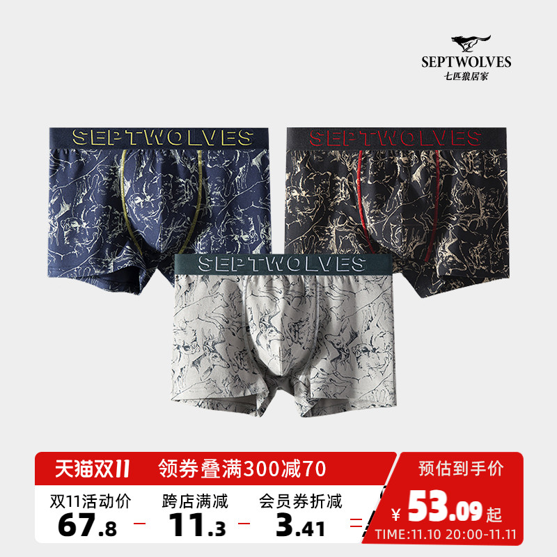 【产品名称:七匹狼纯棉内裤男士四角裤男生裤衩透气短裤内衣裤头大码平角裤】
