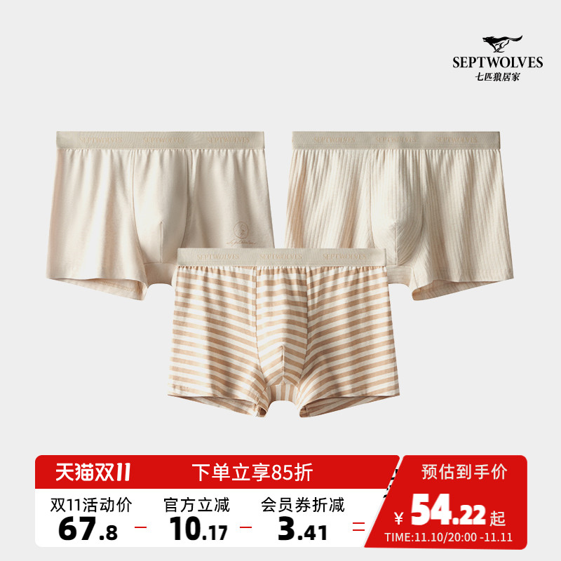 【产品名称:七匹狼男士内裤男生纯棉四角裤抗菌裤衩透气短裤内衣平角裤头男款】