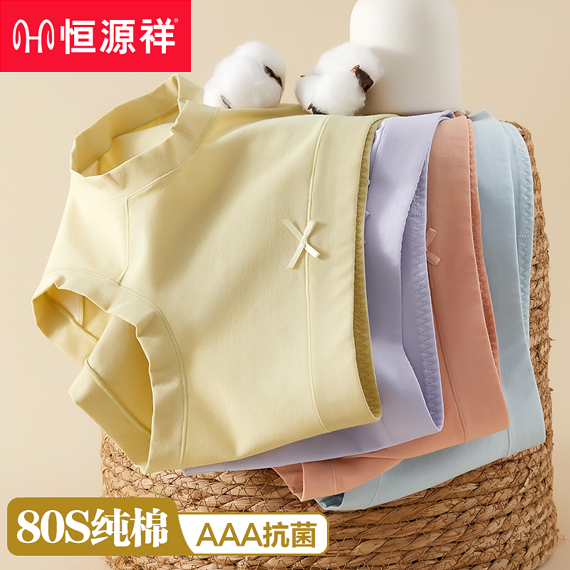 【产品名称:恒源祥内裤女士纯棉抗菌女生少女短裤头中腰三角裤春夏季全棉薄款】