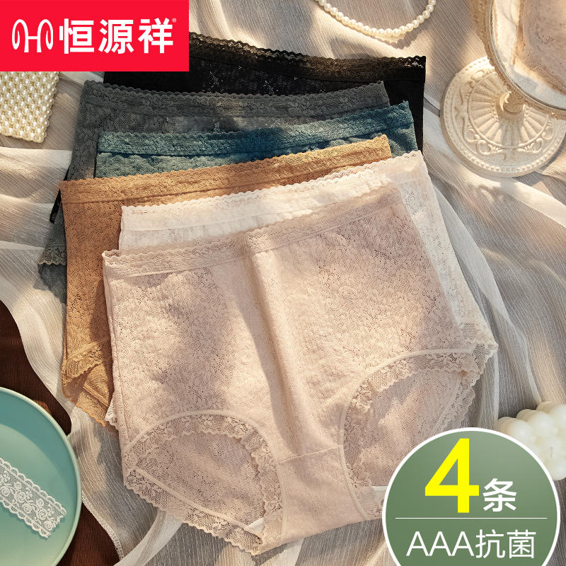 【产品名称:恒源祥内裤女士冰丝无痕高腰收腹提臀抗菌性感蕾丝短裤头夏季薄款】
