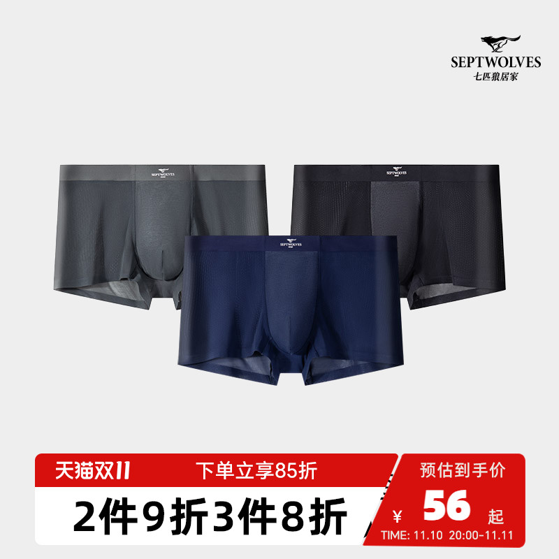 【产品名称:七匹狼男士冰丝无痕内裤网眼透气四角裤秋季薄款网纱短裤平角裤】