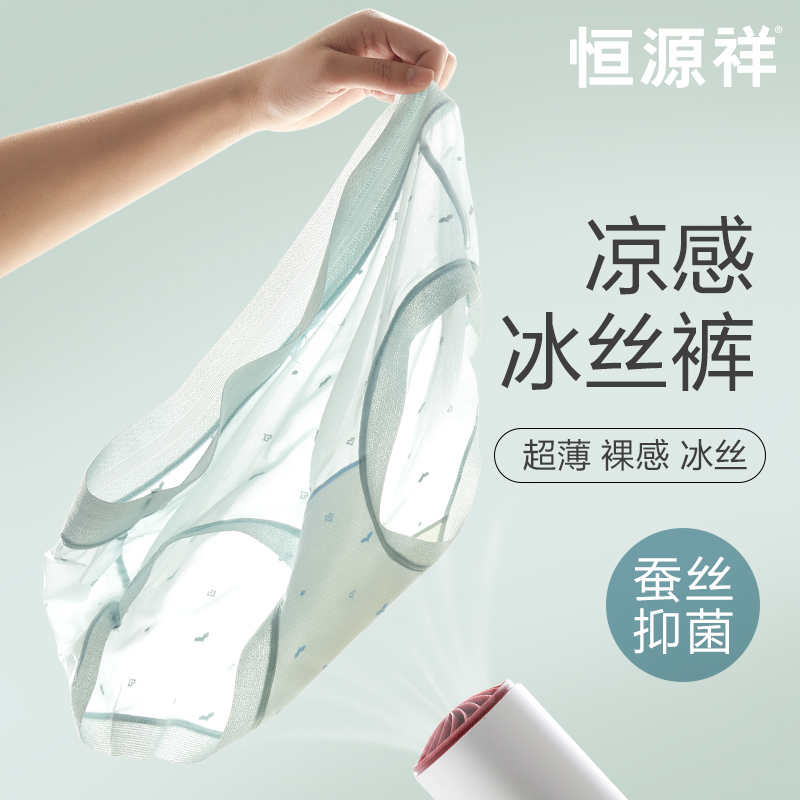 【产品名称:恒源祥凉感冰丝女士内裤女夏季蚕丝抗菌裆中腰少女生无痕三角短裤】