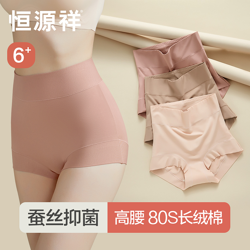 【产品名称:恒源祥内裤女士高腰收腹三角短裤新款含桑蚕丝抗菌裆少女纯棉底裤】