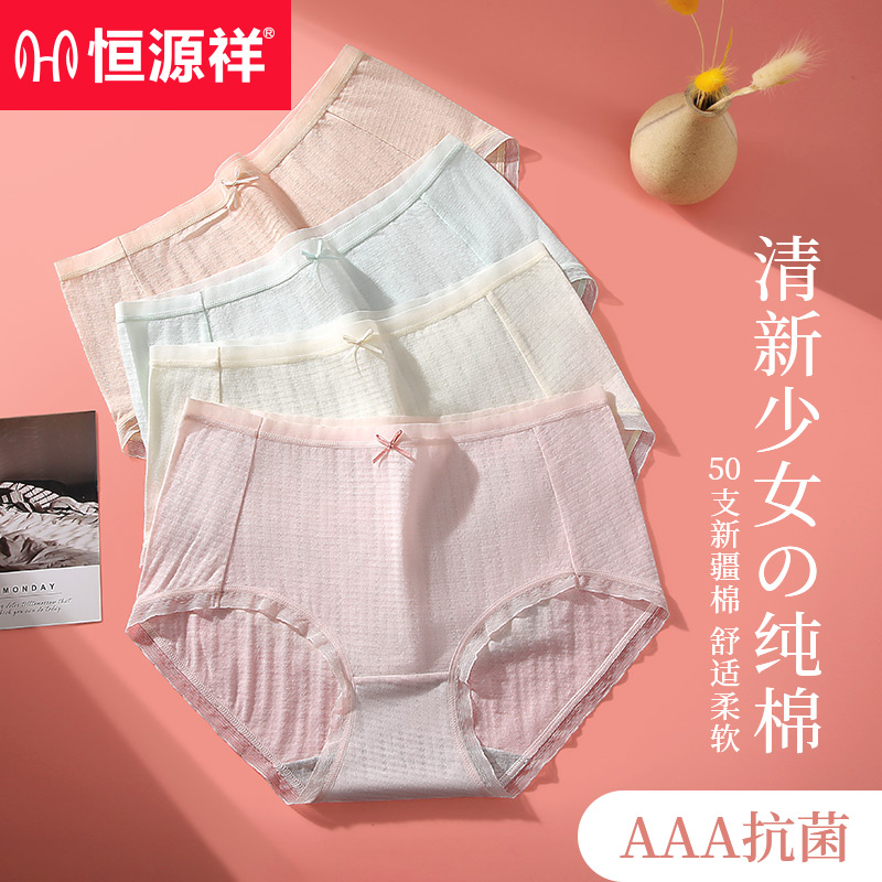 【产品名称:恒源祥纯棉内裤女士抗菌中腰蕾丝边平角全棉少女生三角短裤头无痕】