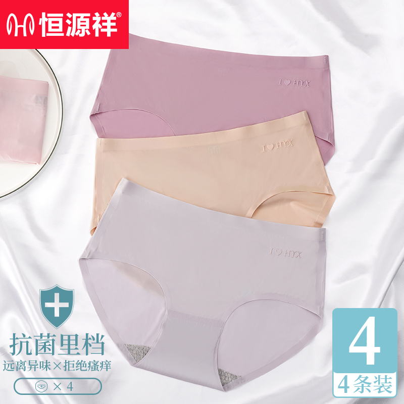 【产品名称:恒源祥内裤女士冰丝纯棉底裆抗菌中腰透气无痕夏季超薄三角短裤女】