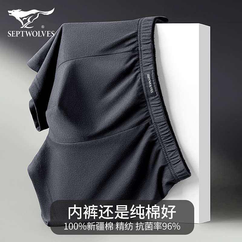 【产品名称:七匹狼男士纯棉内裤男100%全棉平角裤薄款透气四角裤头2022年新款】
