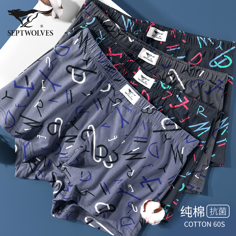 【产品名称:七匹狼男士纯棉内裤男平角裤透气宽松四角短裤头男抗菌2022年新款】