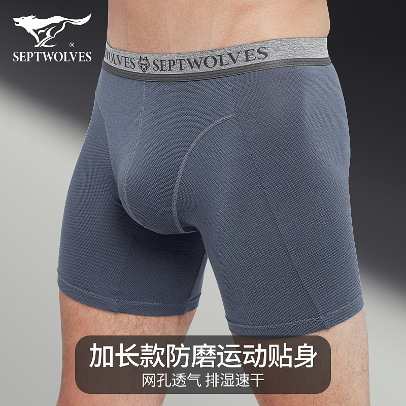 【产品名称:七匹狼男士运动内裤跑步防磨腿训练四角裤速干冰丝加长款平角短裤】