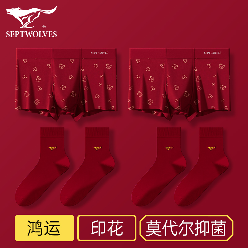 【产品名称:七匹狼内裤男士本命年酒红色莫代尔冰丝结婚短裤男生平角四角裤头】