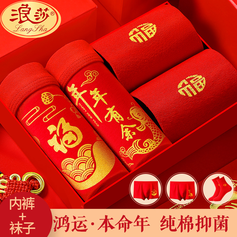 【产品名称:本命年红内裤男纯棉抗菌裆全棉大红色结婚属龙年礼物男士四角短裤】