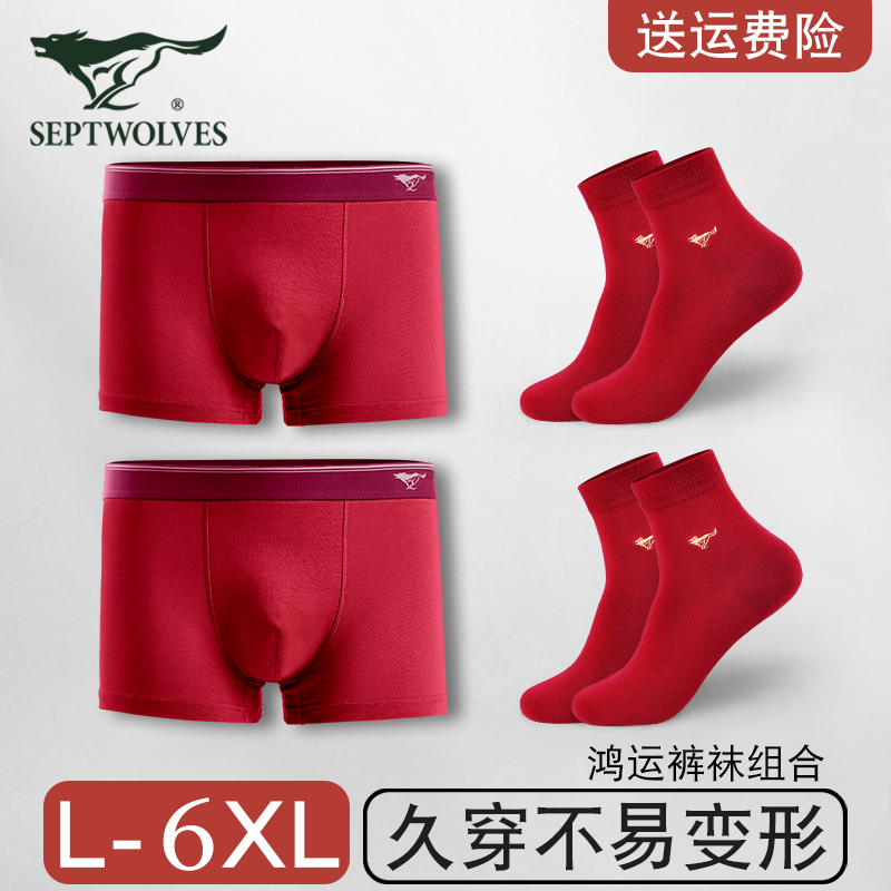 【产品名称:七匹狼本命年礼物男士内裤四角纯棉平角结婚新郎内衣红色短裤袜子】