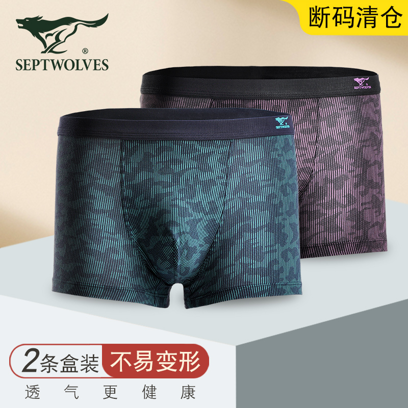 【产品名称:七匹狼男士内裤男生平角裤头秋季透气潮流冰丝底裤男款四角短裤】