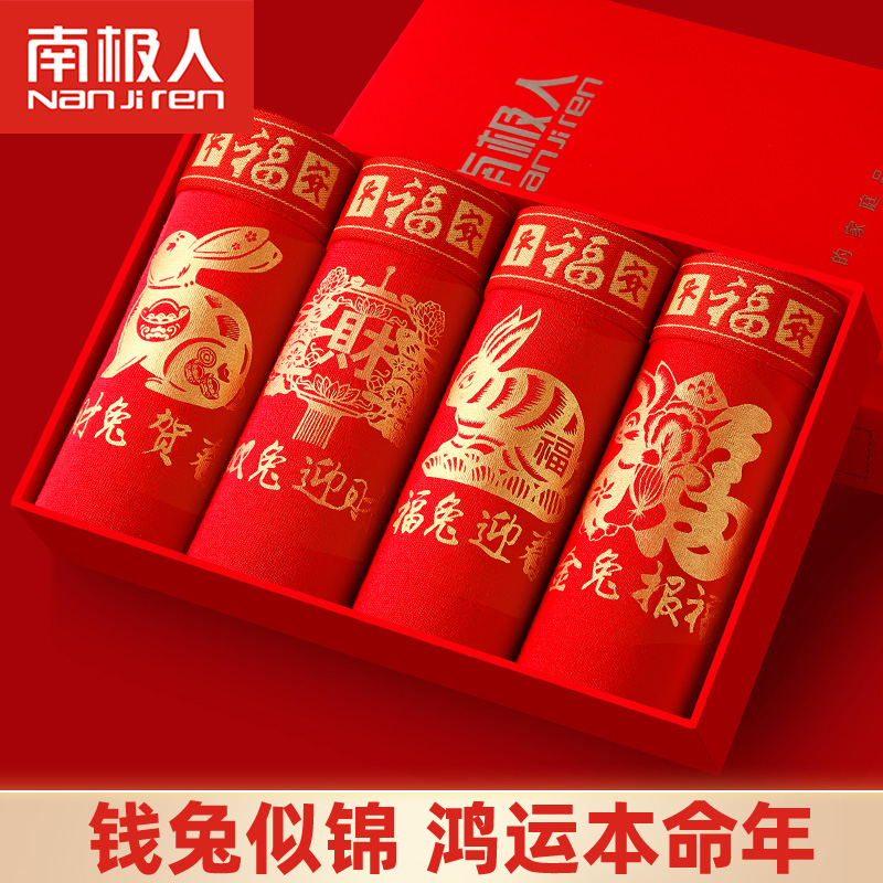 【产品名称:南极人本命年内裤男士平角纯棉大红色礼物属兔年结婚大码四角短裤】